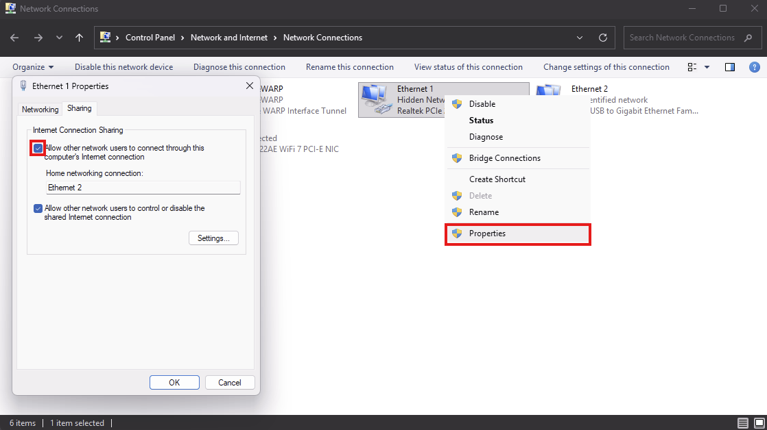 - Check Allow other network users to connect through this computer's Internet connection