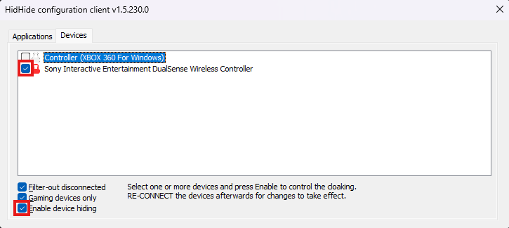 Steam ignores hidden devices in HIDHide. Please follow the steps below if you face any issues with your virtual controller output.