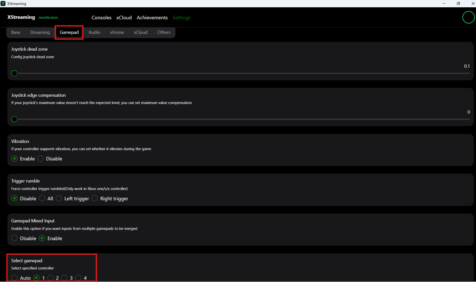When using XStreaming, you must manually set your input gamepad.